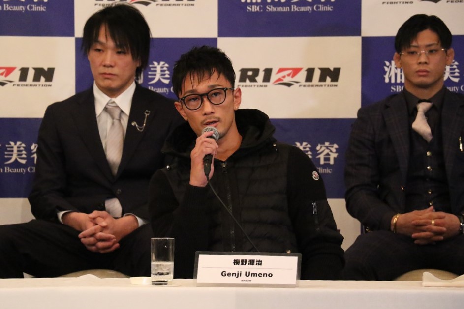 梅野は「昨年6月に皇治選手と試合をして、1Rにああいう形で試合が終わってしまって悔しい思いをしている中で、今回、RIZINで決着をつけられるといういい機会が来たので試合をすることが決まったんですが、まあ、試合が決まったのは数日前。ルールも体重も分からない。ムエタイとキックはルールが違うので、練習はどうするか、体重はどうなるのか、試合は本当に組まれるのか。先延ばしにされてイライラしていたが、今週になって試合が決まって、昨日やっと体重も決まった。去年6月、61kgでトーナメントをやったので、前回と同じ条件で2人の男同士けじめをつけたいと思ってリングに上がります。期待していてください」とここに至るまでの心境を吐露したうえで決着に意欲を見せた。
