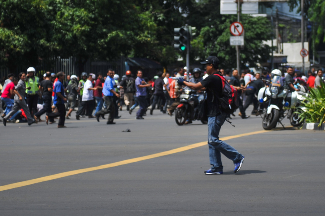 インドネシアの首都ジャカルタで14日、爆弾テロが相次ぎ、現場周辺では銃撃戦も起きた。イスラム教スンニ派過激組織「イスラム国」(IS)が犯行声明を出しており、東南アジアで、ISが関与したとみられるテロが起きたのは初めて。この事件で実行犯とされる4人と民間人4人が死亡した。インドネシアの警察当局は16日、現場で死亡した銃撃犯の1人について、過去のテロ事件で服役したアフィフ容疑者と特定。また、テロに関与した疑いで国内で計12人を拘束したと明らかにした。
