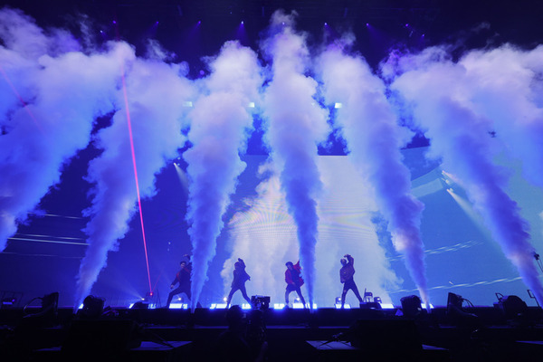 TJBBが完全に温めたステージに登場したのは、4人組ダンス&ボーカルグループのOWV。この日の出演アーティストのなかではもっとも少人数だったが、それを感じさせないステージを展開。冒頭は赤い照明に照らされて妖艶さのあるパフォーマンス。「Gamer」「Sound the Alarm」とロックテイストを前面に押し出したパフォーマンスでオーディエンスを揺さぶった。