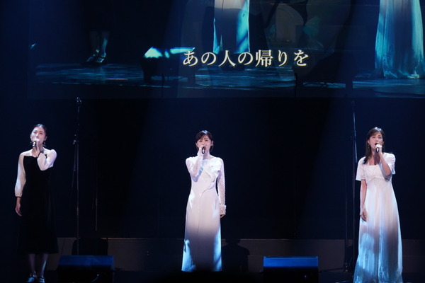 新キャスティングのメンバーを中心とした恒例の歌唱披露では、ジャン・バルジャン役の飯田洋輔による圧巻の「独白」を皮切りに、ファンテーヌ役の昆夏美、生田絵梨花、木下晴香3人による「夢やぶれて」、アンジョルラス役の小林唯が男女アンサンブルとともに歌い上げる「民衆の歌」、エポニーヌ役の清水美依紗とルミーナがエモーショナルな歌声を響かせた「オン・マイ・オウン」、そしてオールキャストによる「ワン・デイ・モア」と、代表曲を披露。12月の本公演開始に向け、意気みなぎる歌声で会場を魅了した。