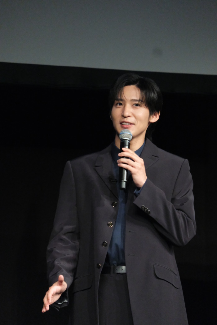 プライベートで見るならどんなコンテンツを見たいかと聞かれると、「Snow Manの国立(競技場)でのライブの映像が出たんですけど自分たちのライブを見てみてもいいのかなと思います。すごい迫力で映し出されると思うんで、絶対楽しいだろうなと思います。色とかも実際に見ていたのと変わらないような、臨場感も楽しめると思うんで、見てみたい」
