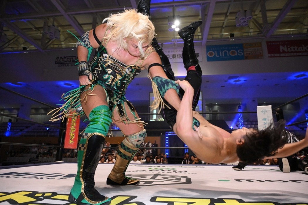 DDTプロレスが夏のビッグマッチ「WRESTLE PETER PAN 2025【DAY1】」(8月30日、東京・ひがしんアリーナ・メインアリーナ)を開催した。KO-Dタッグ王者のTHE APEX(飯野雄貴&納谷幸男)がダムネーションT.Aの佐々木大輔&岡谷英樹を退け、V2に成功。【DAY2】(8・31後楽園)でHARASHIMA&青木真也の超実力派コンビがスクランブルで挑戦することが決まった。