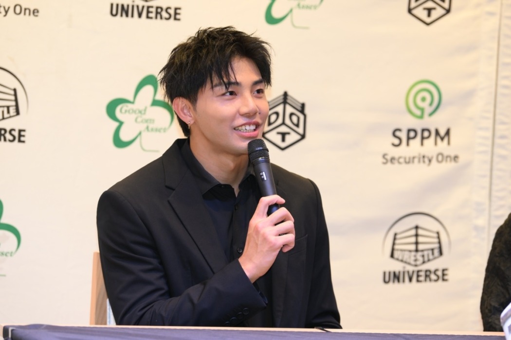 それを受けて、武知が「次の挑戦者は鈴木みのる選手です!」とキッパリ。上野は「挑戦者に鈴木さんを迎えることで、僕がUNIVERSAL王者のときに感じた鈴木さんの強さとか痛みとか、こんなに苦しいのにまた味わいたいと思う、プロレスのすべてが詰まっている男と6人タッグをかけて戦いたいと思いました」、To-yは「僕は聞いたとき、心のなかでヒー!となったけど、戦うしかないと思いました。どんな恐怖を味わっても、プロレスラーになったときに決めました。どんな相手が来ても戦います!」と語った。