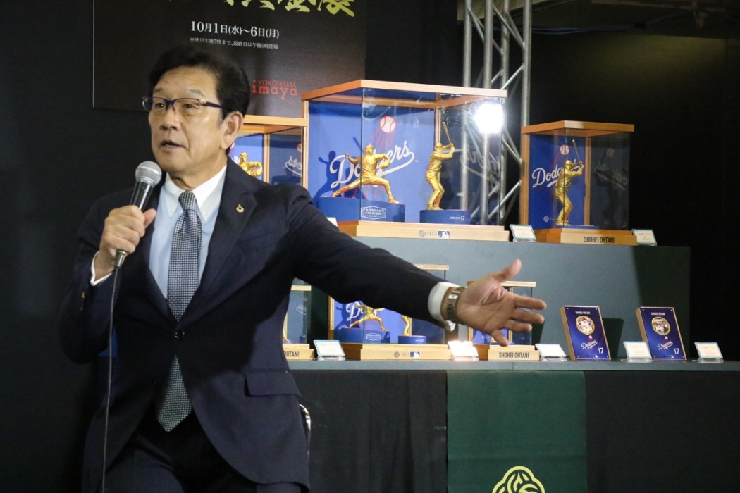 北海道日本ハムファイターズのチーフベースボールオフィサーを務める栗山英樹氏が10月1日、神奈川・横浜の横浜髙島屋で行われた「横浜髙島屋 大黄金展『黄金のバッター 大谷翔平』お披露目イベント」にゲストとして出演した。