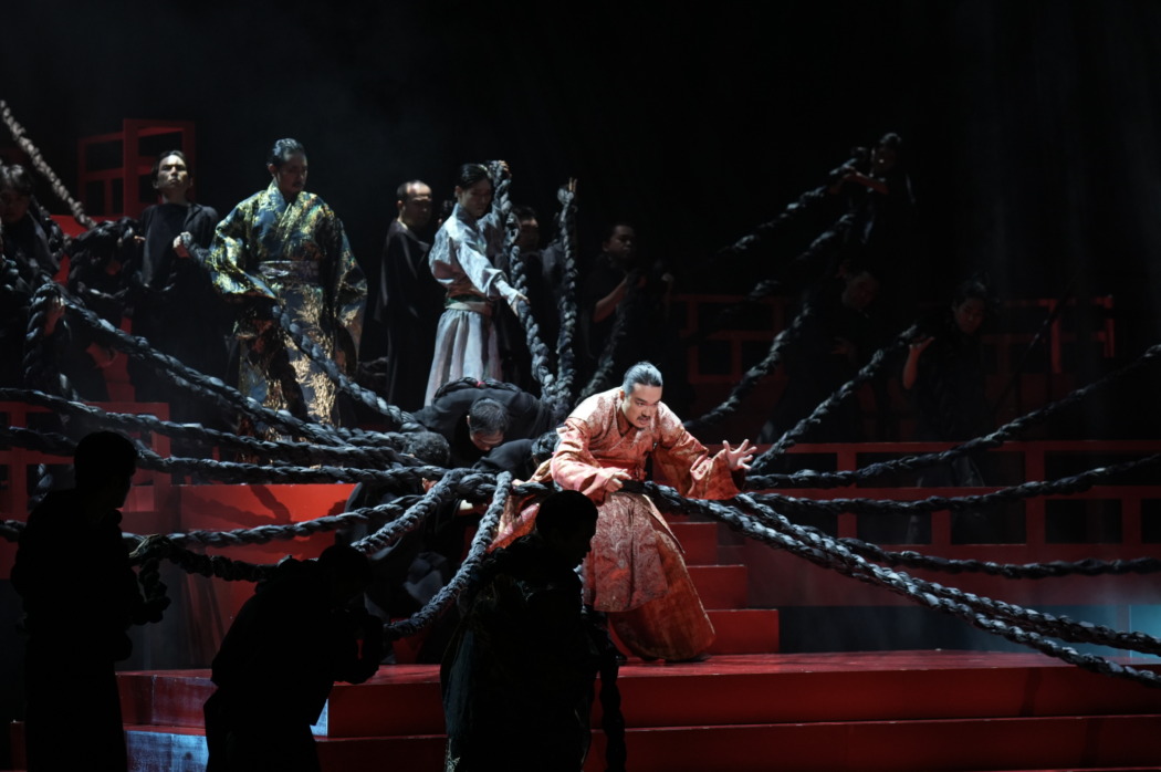 新作オペラ『平家物語ー平清盛ー』は、源平の争乱を背景に平清盛の台頭と没落、源氏の再興を描く。平清盛を池内響、徳子を川越未晴が演じる。