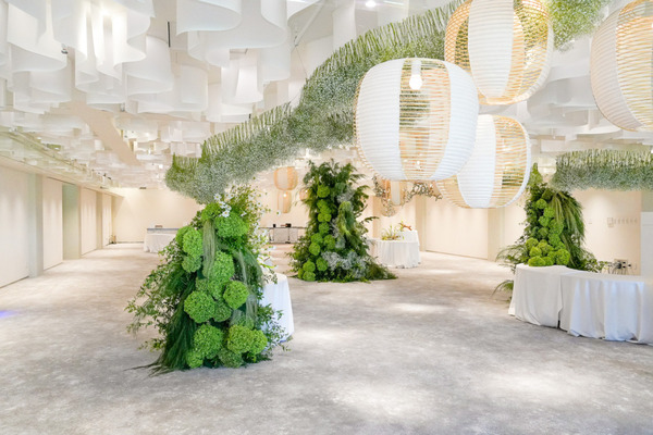 グランドオープンに先駆け、今年5月に「Celebration Hall – The GARDEN」がオープン。新設した「インスピレーションサロン」ではVRでリアルな披露宴の様子が体験できる「HAPPO-EN EXPERIENCE SHOWCASE」、花材やコーディネートが選べる装花アトリエ、メニューを味わいながら打ち合わせできるシェフズキッチンを導入。月夜をテーマにした1階「HAKOU(波光)」、寄木の宝箱をモチーフにした2階「KIOTO(木音)」のバンケットをリニューアルした。