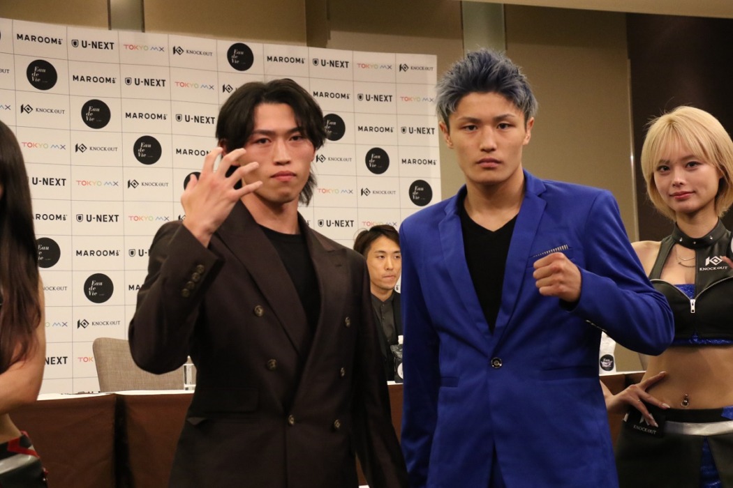 古村は「明日はこの中で俺が最強ということを証明する。圧倒的な破壊力を見せます。楽しみにしていてください」、久井については「若いながらもやっぱりしっかりと華がある選手だし、スター選手だと思うんですが、明日はしっかり俺が倒してKNOCK OUTの顔になります」と久井を倒して一気にライト級に主役に躍り出る意欲を見せた。
