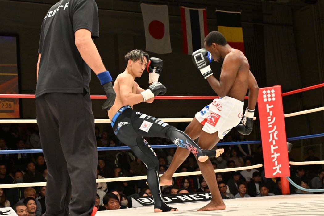2R、圧をかけるサイヤン。都木は蹴りで牽制。とにかく圧を強めパンチのサイヤン。都木は前蹴り、左ミドル。サイヤンが強烈なバックブローをヒット。サウスポーにスイッチの都木が右ロー、左インロー。なおも都木は左インロー、前蹴り。都木は右ロー、左インローの連打で下がらせるとパンチ、そしてヒザをボディーに。サイヤンはがくっと動きが落ちる。都木は組み付いてヒザをボディーに連打。ボディーを効かされガードが下がったサイヤンの顔面にヒザを打ち込み、なおも左右のフック。体をくの字に曲げたサイヤンのボディーに蹴りを打ち込むとサイヤンはダウン。ほぼ戦意喪失状態で立ち上がることができず都木のKO勝ちとなった。
