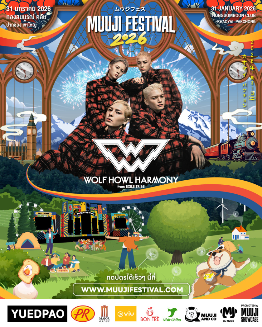 4人組ボーカル&ラップグループのWOLF HOWL HARMONY(WHH)と10人組ダンス&ボーカルグループのTHE JET BOY BANGERZ(TJBB)がタイ最大級のジャパニーズ・ミュージックカルチャーフェスティバル『MUUJI FESTIVAL 2026』(タイ・カオヤイ、2026年1月31日)に出演することが決まった。WHHは2回目の出演、TJBBは初出演。