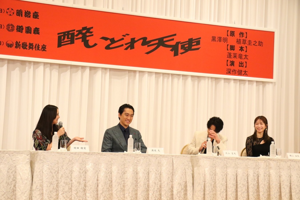 この「酔いどれ天使」については映画が公開された1948年4月から約半年後に、ほぼ同じキャストとスタッフが集結して舞台作品として上演されたという記録が残っているという。当時の脚本は長く眠っていたが、近年、偶然発見され、2021年に松永役を桐谷健太が演じ舞台化されている。