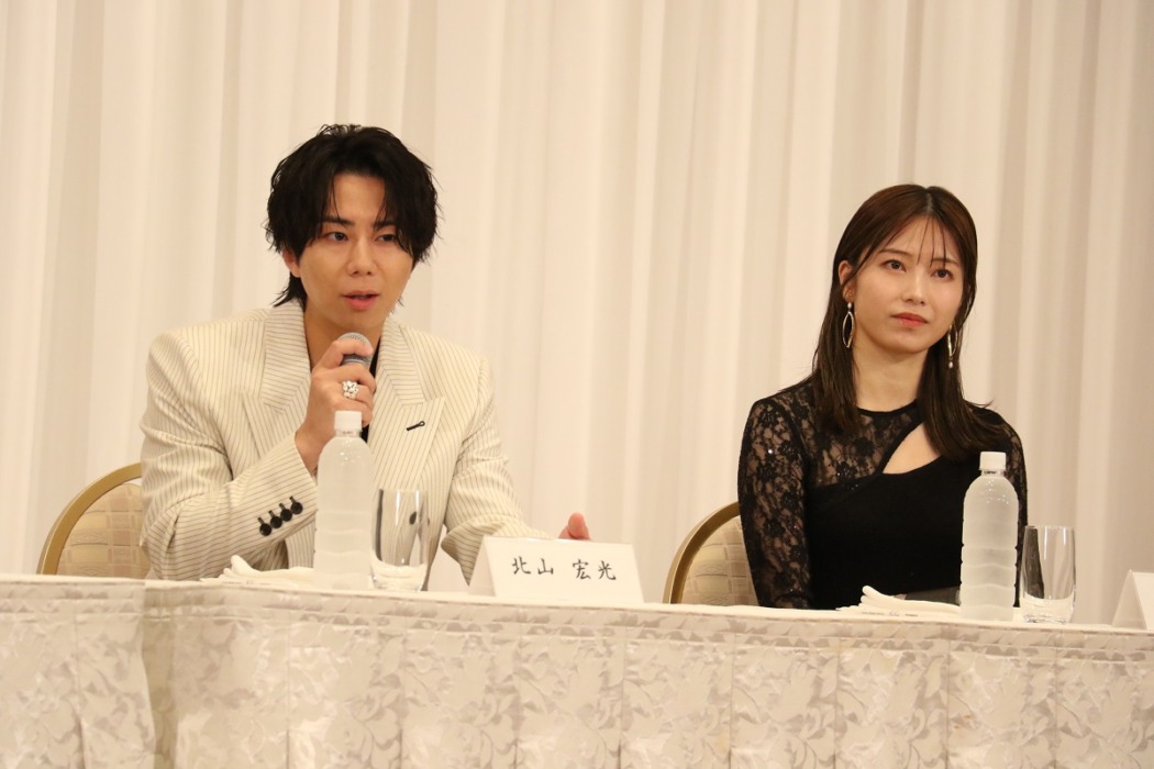 主役の松永役の北山宏光(左)とダブルキャストでぎん役を演じる横山由依