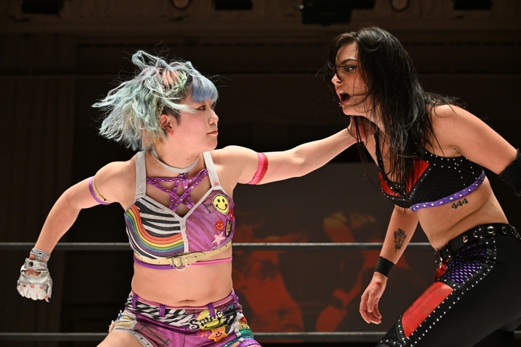 東京女子プロレスが10月18日、東京・後楽園ホールで「Additional Attack ’25」を開催した。インターナショナル・プリンセス王者の遠藤有栖がアリス・クロウリーとの“ありす対決”を制し、初防衛に成功した。