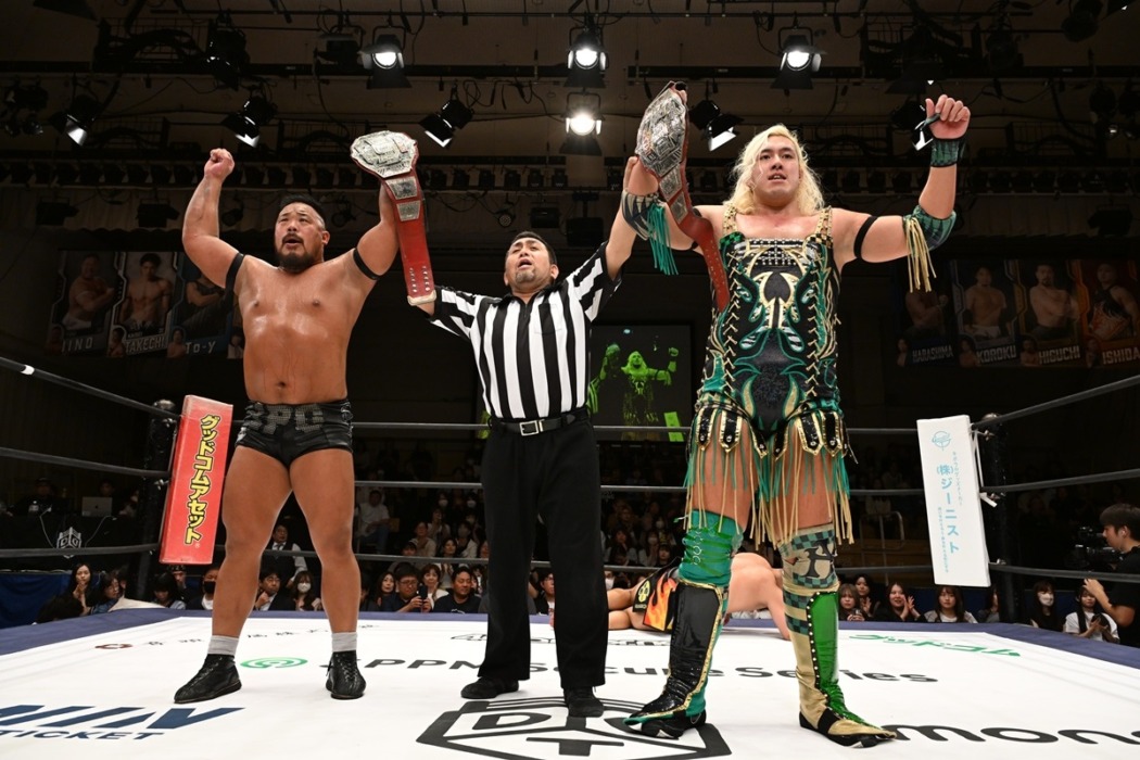 飯野雄貴&納谷幸男が樋口和貞&石田有輝を退け、KO-Dタッグ王座V5。11・3両国でMAO&KANON、橋本千紘&優宇と3WAY戦で激突【DDT】