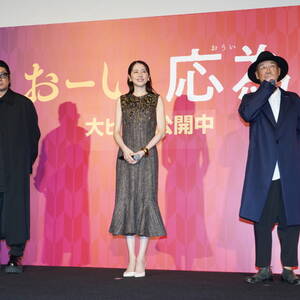 公開中の映画『おーい、応為』の舞台挨拶が23日、都内にて行われ、俳優の長澤まさみ、永瀬正敏と大森立嗣監督が登壇。長澤と永瀬が、大森監督の父である舞踏家・麿赤兒と世界的歌姫・マドンナの2ショットに感嘆した。