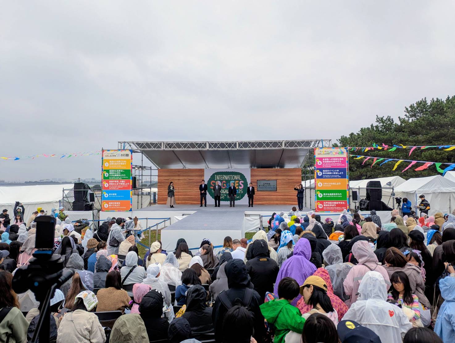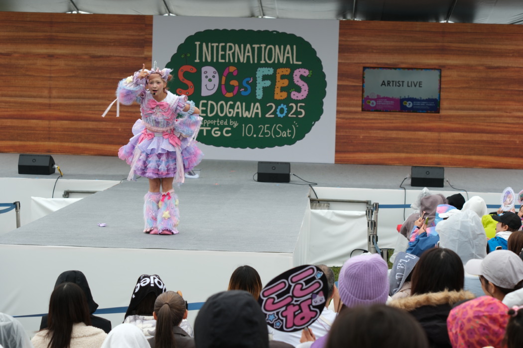 江戸川区と人気イベント「東京ガールズコレクション(TGC)」を企画・運営する株式会社W TOKYOがタッグを組んで展開している「INTERNATIONAL SDGs FES in EDOGAWA 2025 supported by TGC」が10月25日、江戸川区・葛西臨海公園の汐風の広場で開催されている。気温も低く霧雨が断続的に吹きつける、あいにくの天候ながら、区内外から、たくさんの人が会場に足を運び、ファッションショーや音楽ライブ、国際色豊かな江戸川区の多様性に触れたSDGsの推進・達成を目指すトークショーに熱心に耳を傾けている。