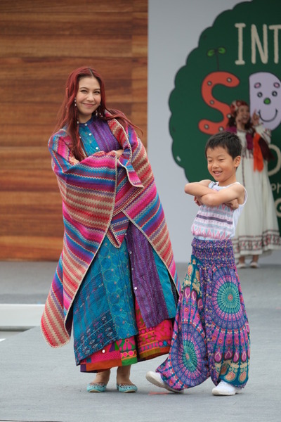 イベントは、長谷川ミラや山下幸輝(WILD BLUE)らと、区内のインターナショナルスクールの児童たちとのランウェイでスタート。カラフルでエスニックなランウェイで会場はぱっと明るくなった。