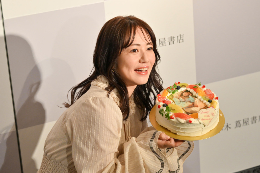 25周年記念のケーキを手に「ここまで芸能生活を続けているとは思ってなくて(笑)」と磯山