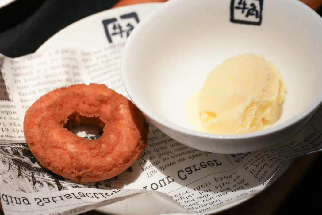 そのほかにお酒と相性の良い「牛角横丁」メニューとして「ぼんちり(タレ、塩ダレ)」「ふりそで(塩ダレ)」「ふりそで特製醤油焼き」「やげん軟骨(塩ダレ、黒胡椒塩ダレ)」「シマチョウ(塩ダレ、味噌ダレ)」、サイドメニューとして「アボカドグリーンサラダ」「トマトとアボカドのバジルマリネ」「生オイキムチ」、デザートに「炙って!ドーナツアイス」が登場。