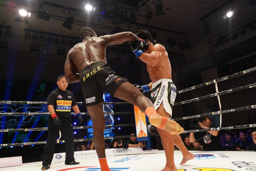 2R、ジャブの刺し合いからコンボウが圧をかけ、右ミドルからの右フックでダウンを奪う。立ち上がった松倉にコンボウは圧を強めパンチを連打。なんとかガードの松倉。ガードの上から重いパンチのコンボウ。ロープに詰めたコンボウはガードの隙間から右アッパー、右ストレート、ヒザ。松倉もパンチを返すが、コンボウはロープを背負わせるとパンチの連打から強烈な右ボディー。これに松倉はたまらずダウン。なんとかカウント8で立ち上がるがファイティングポーズは取れず、コンボウのKO勝ちとなった。