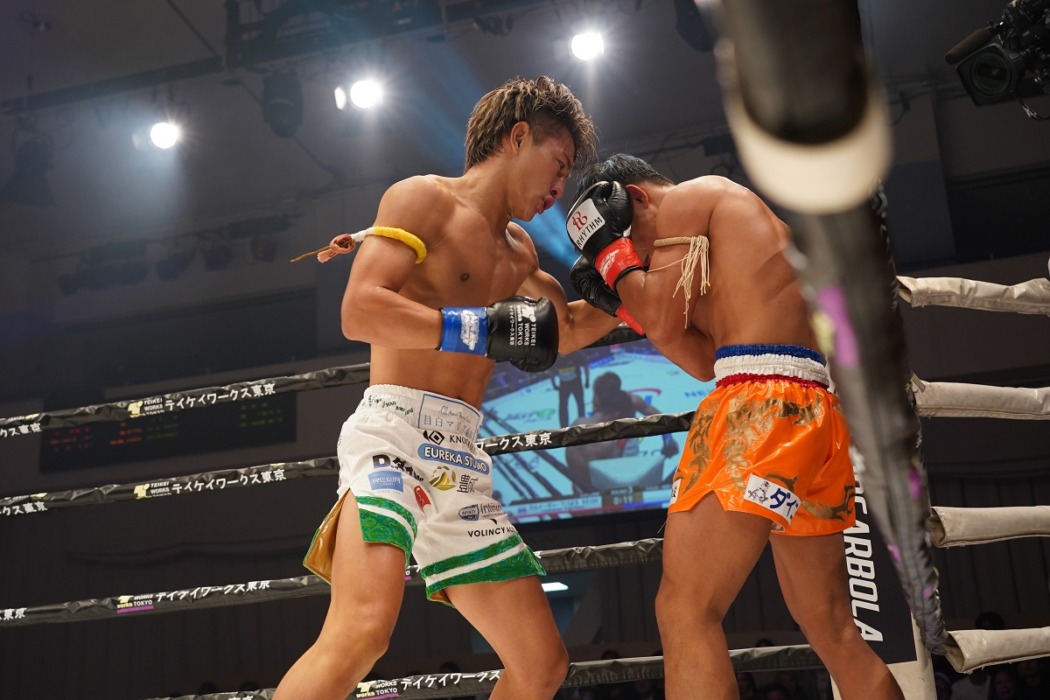 3R、すぐに圧をかけて右ミドルの龍聖。ロムイーサンも押し返しパンチを連打。龍聖はボディーブロー、ヒザ。なおも詰めて右ストレートでダウンを奪う。立ち上がったロムイーサンに襲い掛かる龍聖。コーナーに詰めてパンチの連打、その間に右ハイ、右ボディーと多彩な攻撃を打ち込む。なんとかパンチを返すロムイーサン。龍聖は構わず圧をかけて右ストレート。そして左フック、右アッパー、飛びヒザ。なおも龍聖は右ストレート、左ボディーを連打。左ボディー、左フック、右ストレート、右フックを立て続けに放ち、ロムイーサンに反撃を許さない。そのまま試合終了のゴングが鳴った。