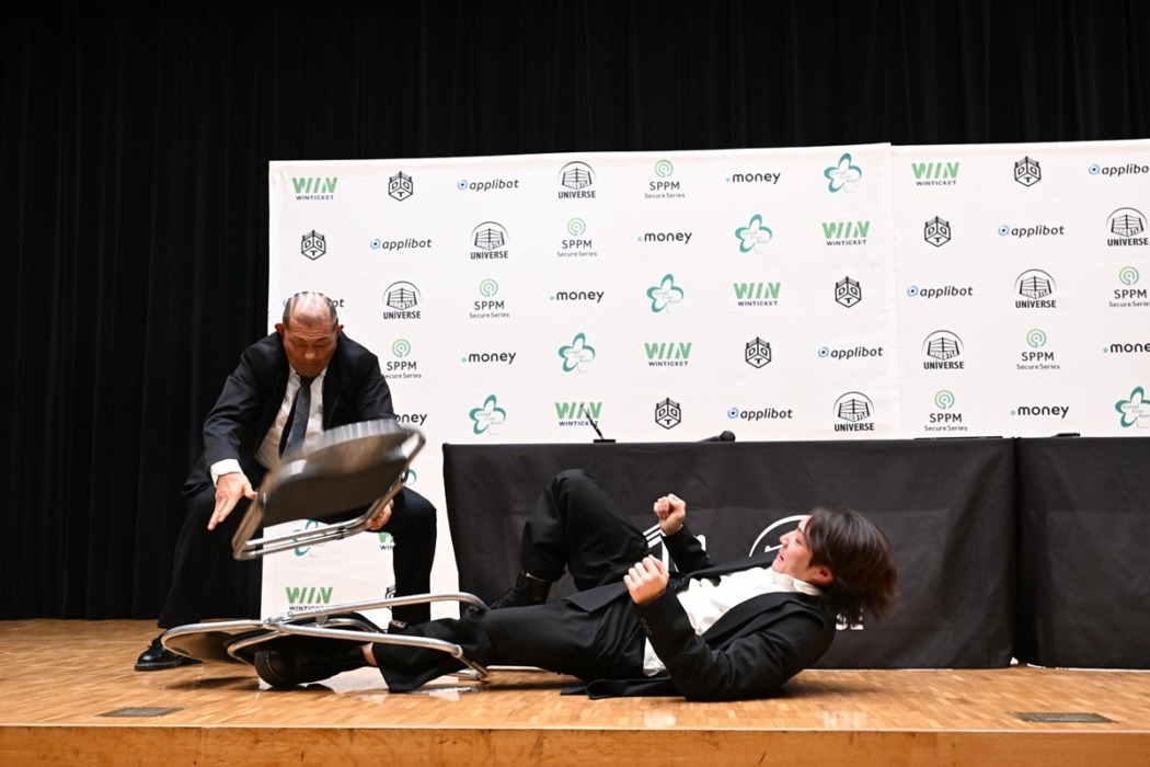 フォトセッションになると、2人は視殺戦を繰り広げ、先に退場しようとしていた上野の左足に鈴木がイス攻撃。止めに入った今林久弥GMをもイスで殴打した鈴木はヒールホールド。鈴木は慌てて制止した松井幸則、木曽大介両レフェリーにも暴行をはたらくと、「上野君、遊びましょ!」と捨てゼリフを吐いて、会見場を後にした。