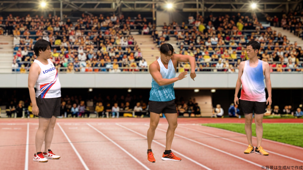 中務が挑戦するのは、陸上競技で話題となったあのシーンを切り取ったコント。ロングコートダディの堂前、セルライトスパの大須賀と肥後、 蛙亭の中野とともに男子100メートル走に挑戦する。しかし、選手紹介のパフォーマンスがやけに長い。中務は鍛え抜かれた肉体美を披露するパフォーマンスをするが……