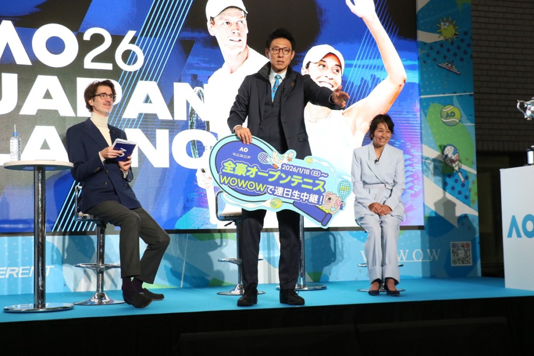 この日は現在はスポーツキャスター、タレントとして活動する松岡修造と現役時代は世界ランキング4位まで上り詰め、現在は日本女子テニスのジュニアの育成に注力している伊達公子さん、スポーツ解説者でテニス番組のナビゲーターを務めるフローラン・ダバディ氏がスペシャルゲストとして登場。「全豪オープンテニスと日本テニスの未来」をテーマにトークセッションを行った。