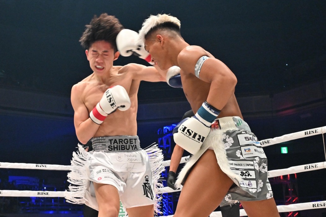 2R、松本が左ハイ、左ストレート。圧をかけて左ミドル。松本が左ハイから左インロー。これがローブローとなり中断。再開後、圧をかける塚本。互いのパンチが交錯。塚本が詰めて左右のボディー。松本は左ストレート。距離を詰めて互いにボディー。塚本のボディーに松本は左インロー。松本が左フック、塚本は左右のボディー。松本の左インローに塚本は左右のボディー。圧をかける塚本に松本は左ミドル。塚本は飛びヒザ、ワンツー。