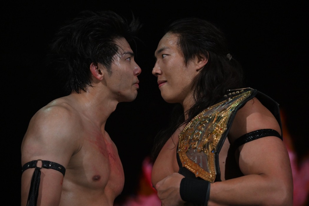 武知の握手拒否については「試合前から僕をリスペクトしてくれて“隣に立てるのがうれしいです”って、僕にも言ってくれていましたけど、手を払った。彼が僕の手を払ったって事は、僕と戦いたいって事でしょ。多分、試合の前はそんなこと思ってなかったと思う。試合をして、隣にいて、目の前で僕の戦いを見て“あっ、TAKESHITAと戦ってみたい”と思ったから手を払った。それはなぜか。武知海青がプロレスラーになったから。武知海青はプロレスラーです」と語った。