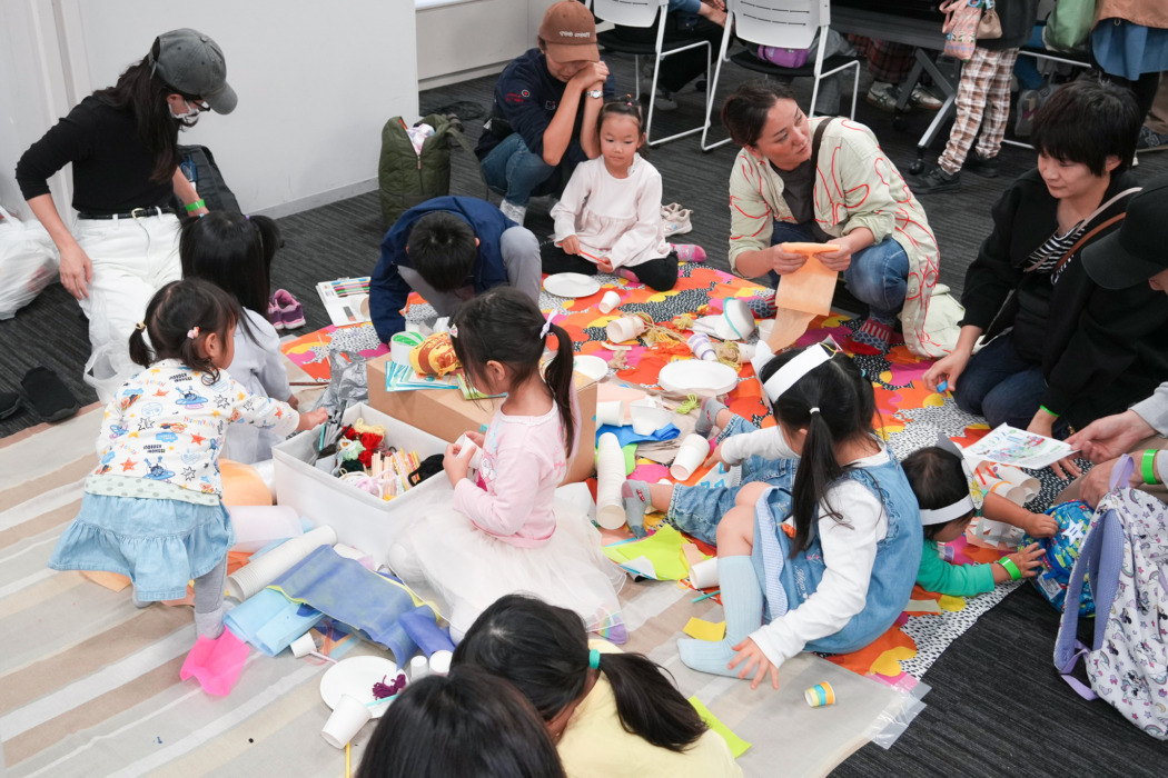 「としまっ子フェス」は地域の企業や団体、アーティストなどによるさまざまなワークショップが体験できるイベント。2回目の開催となる今年のコンセプトは “豊島区役所エリアを丸ごと遊ぼう!” で、子どもたちは普段は訪れる機会がない区役所の中でものづくり体験やテントの飾り付け、ドーム作り、樹木の学び体験のほか、アート、サイエンス、プログラミングなどデジタル分野まで多様なワークショップが体験できる。