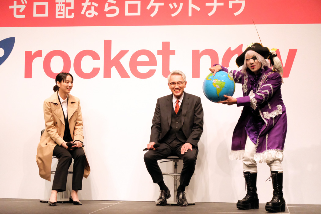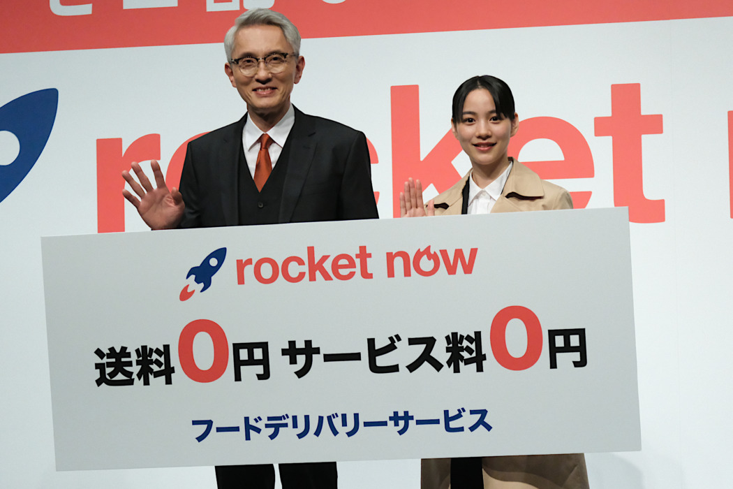 俳優の松重豊とのんが11月6日、都内で行われたフードデリバリーサービス「ロケットナウ(Rocket Now)」の新CM発表会に登壇した。