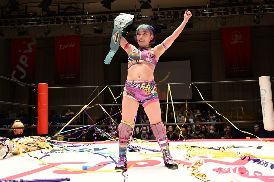 インター王者・遠藤有栖が大奮闘の高見汐珠を退け2度目の防衛「今の私、無敵だと思ってるので誰でも来い!」【TJPW】