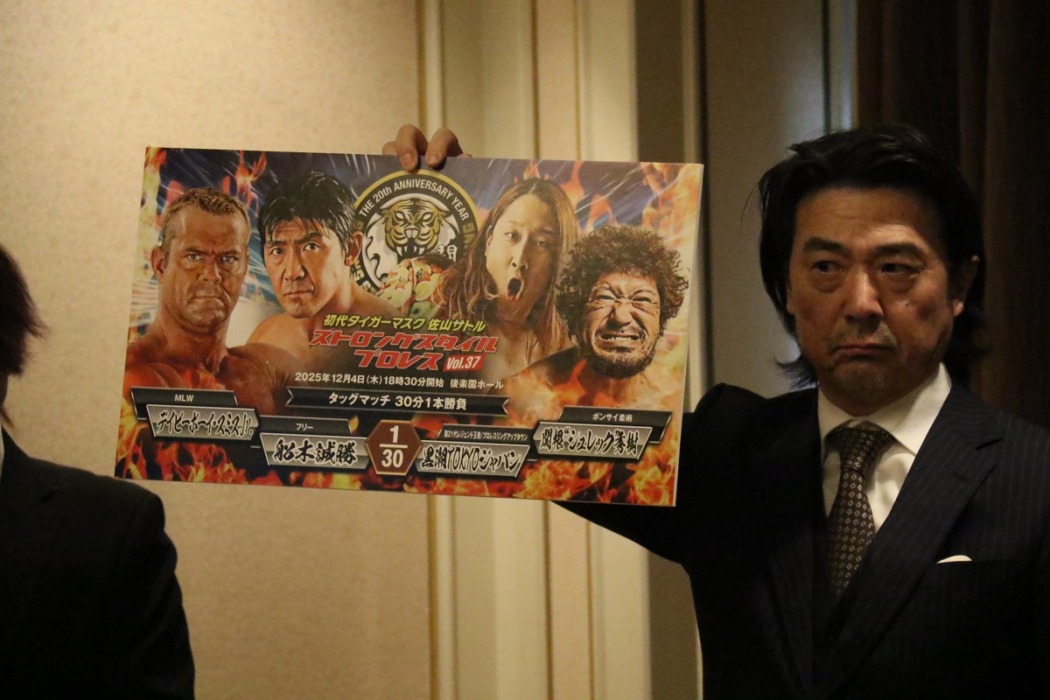 村上和成、高橋“人喰い”義生組とスーパー・タイガー、竹田誠志組が初代タッグ王座をかけて対戦。村上は「勝つことは決まっている」と豪語【SSPW】