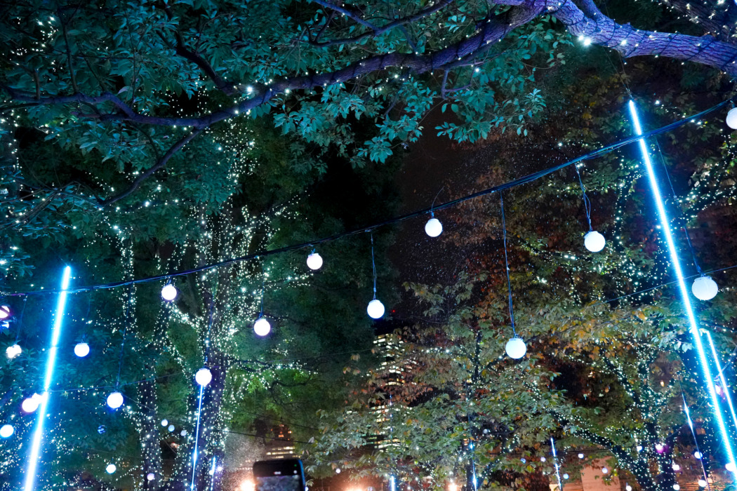 イルミネーションの後半には、昨年好評だった白いしゃぼん玉と雪が舞う演出がパワーアップ! 12月12日までの期間限定でしゃぼん玉は3分に1回、雪は12分に1回実施され、まるでホワイトクリスマスのような特別演出が体験できる。