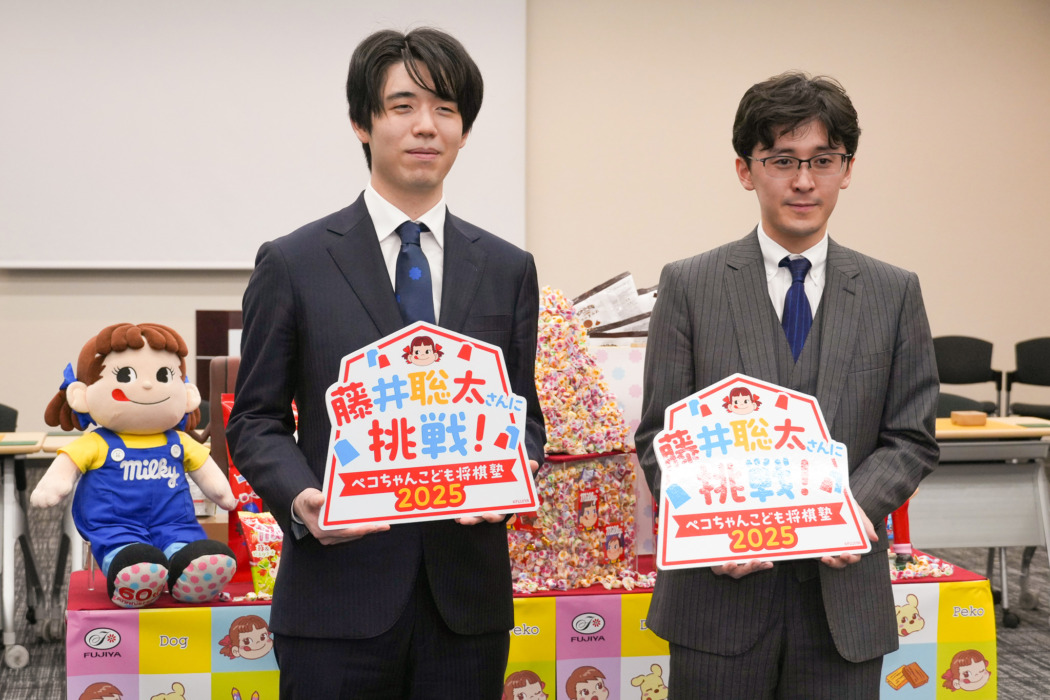 藤井聡太六冠&伊藤匠二冠 “推しお菓子” は「チョコまみれ」小学生100人と対局イベント 2025.11.15 Vol.Web Original 今日の東京イベント ペコちゃん&不二家のお菓子に囲まれる藤井聡太六冠(左)と伊藤匠二冠 #ペコちゃんのこども将棋塾 #伊藤匠 #将棋 #藤井聡太 <<< 1 2 3 4