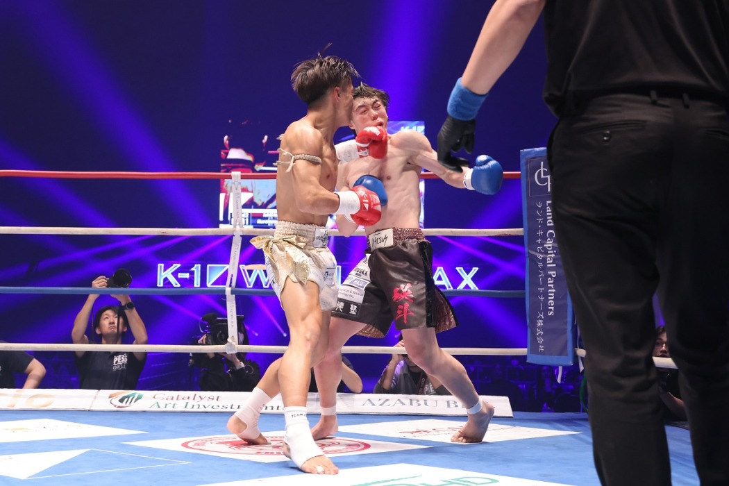 3R、石井は右ミドル。黒川が飛びヒザ。圧をかける黒川が左フック。石井もパンチで対抗。黒川は右アッパー、左ストレート。石井は左ボディー。石井はボディーストレート、前蹴り。黒川の左ストレートに石井は左フック。前に出る石井に黒川は左フック。石井の左フックに合わせた黒川の左フックで一瞬、石井がぐらり。黒川がラッシュもしのぐ石井。打ち合いから石井の前蹴りがローブローのジャッジで一時中断。再開。激しいパンチの打ち合いの中、黒川のヒザ蹴りに、右フックを合わせた石井がダウンを奪う。立ち上がり、前に出てパンチを放つ黒川。石井も最後まで打ち合いに応じる中、試合終了。