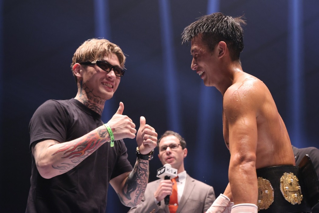 朝久泰央が“愛と誇り”の2階級制覇達成。65kgの世界最強決定トーナメントの開催をアピール【K-1】