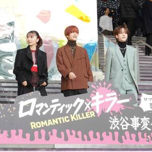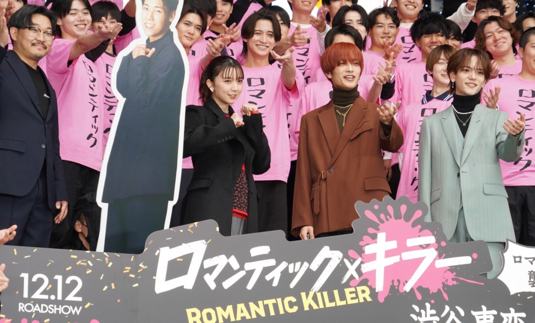 映画『ロマンティック・キラー』(12月12日公開)のイベントが11月14日、渋谷ストリーム・稲荷場広場にて行われ、俳優の上白石萌歌、高橋恭平(なにわ男子)、中島颯太(FANTASTICS from EXILE TRIBE)が登壇。83人のエキストラとともにトークイベントで盛り上がった。