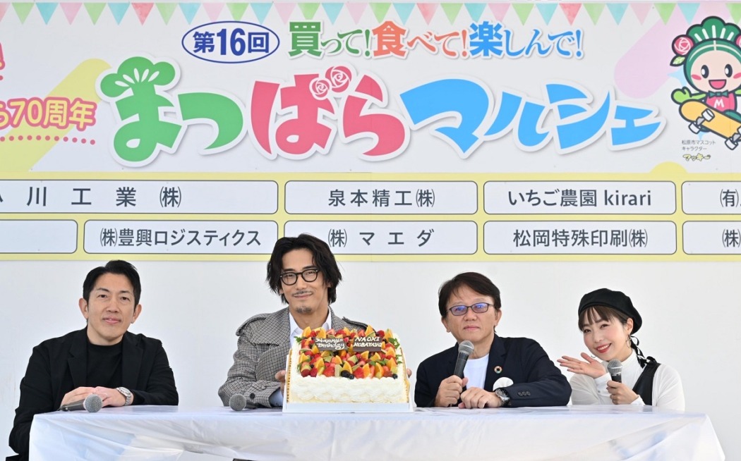 井宏文松原市長、小林直己、MCの一木広治氏、Chigusa(左から)