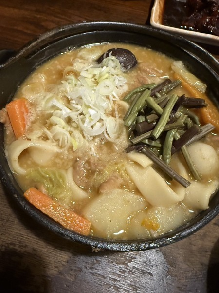 有名なお店で店舗もいくつかあって、最初はライブ会場に近いところに行こうと思ったんですけど結構並んでると。それで少し遠い竜王玉川店に行ってみたんですけど、そこがすごいところでした! 250年前からある古民家をお店にしているんです。何気に初めてのほうとうでしたが、ボリュームたっぷりで、お腹もパンパンになりました。龍が見つけたもつ煮もおいしかったなあ。タレがすごく好みで、麦ごはんも頼んじゃって……」