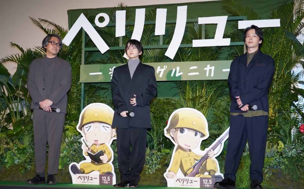映画『ペリリュー ー楽園のゲルニカー』(12月5日公開)の東京プレミアが19日、都内にて行われ、声優を務めた俳優の板垣李光人、中村倫也と原作者・武田一義氏が登壇。板垣と中村が物語の舞台となるパラオに伝わる日本語由来の言葉に驚いた。