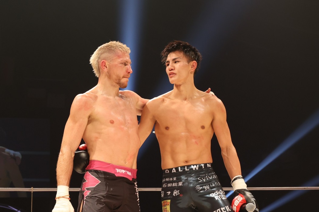 試合後に海人はケールを呼び込み、2人でフォトセッション。ケールはマイクを握ると「海人選手は日本で一番の選手です。なのでとてもいいファイトになった。僕から見ると1Rのダウンはスリップダウンだった。これで1勝1敗になったので、またやらせてください。今度はタイトル戦でやらせてください」とアピール。海人も「ケール選手、戦ってくれて感謝しています。今回勝ちましたけど、僕自身納得がいっていないので再戦させてほしい。完全決着をつけるので、その時は見に来てください」と返した。