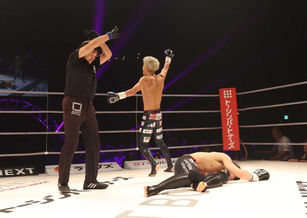 試合後のマイクで安本は「初めてのワンデートーナメントで、本当にすごく不安で不安で。毎日、本当に不安で生きて来ました。なんて言ったらいいか分からないんですが、僕が日本で、いや世界のフェザー級で俺が一番強いと思います。シュートボクシングファンの皆さんも、僕のことを知らない方もたくさんいると思うんですが、フェザー級で僕が一番強いんでこれから追いかけて応援してもらえるとうれしいです。毎日、師範と仲間に練習を支えてもらって。お母さんにもいろいろやってもらっていたので、恩返しができたなと思います」とフェザー級世界一を宣言した。