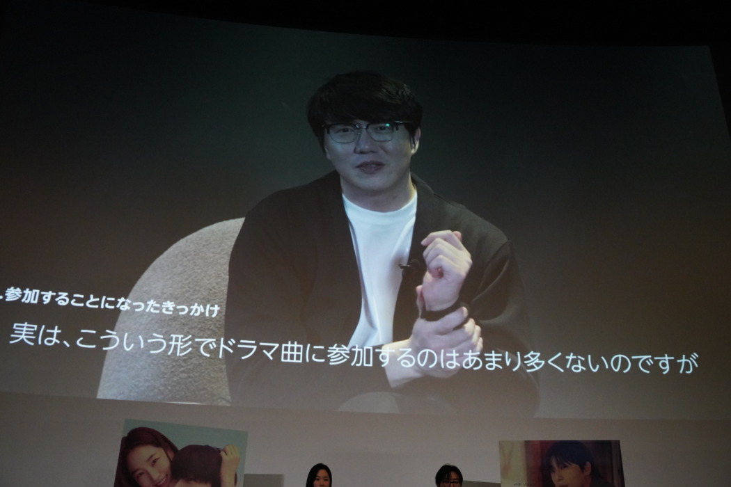 この日は挿入歌を手がけたソン・シギョンと幾田りらからサプライズでビデオメッセージが到着。シギョンはソジュンから「兄さん、一度ぜひ」と依頼されて参加したと明かしつつ、メッセージの後半は流ちょうな日本語で「僕の曲と声が少しでも作品の成功に貢献できたら」とエール。ソジュンも「実は先日もお会いしたんですけど、また感謝を伝えに行かなきゃ」。