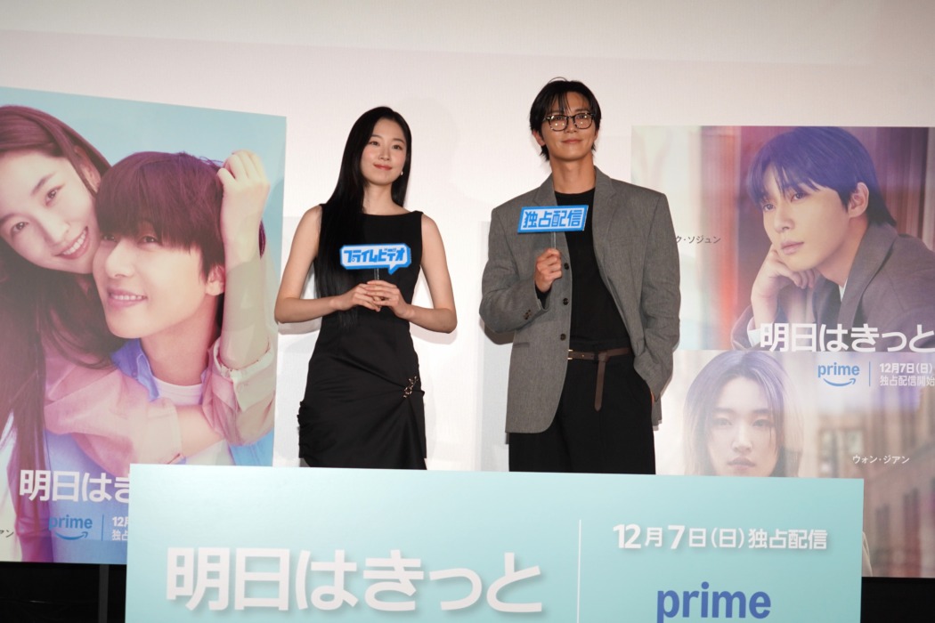 配信ドラマ『明日はきっと』のイベントが11月27日、都内にて行われ、来日した俳優のパク・ソジュンとウォン・ジアンが登壇。撮影を振り返りつつ、挿入歌を手がけたソン・シギョンと幾田りらからのメッセージに感激した。