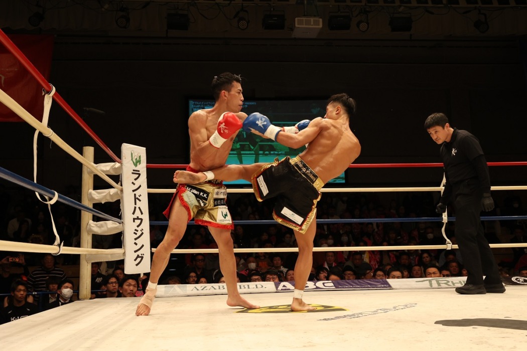 1R、ともにオーソドックスの構え。圧をかけてローの村田に璃明武は前蹴り、ワンツー。村田が左インローからワンツー。璃明武もロー、ワンツーを返す。村田が左ミドル。璃明武は右カーフ。ジャブの刺し合いから村田が左ミドル。璃明武はワンツー。璃明武は左ジャブ、左ミドル、ワンツー。璃明武は右ボディー、左ジャブを連打。璃明武は左ジャブから右ストレート。村田もパンチを返す。璃明武の左インローがローブローとなり一時中断。璃明武に口頭注意。再開。璃明武がワンツーからヒザを顔面に。村田もパンチを返す。璃明武は前蹴りからワンツー、左ミドル。村田もパンチを連打。