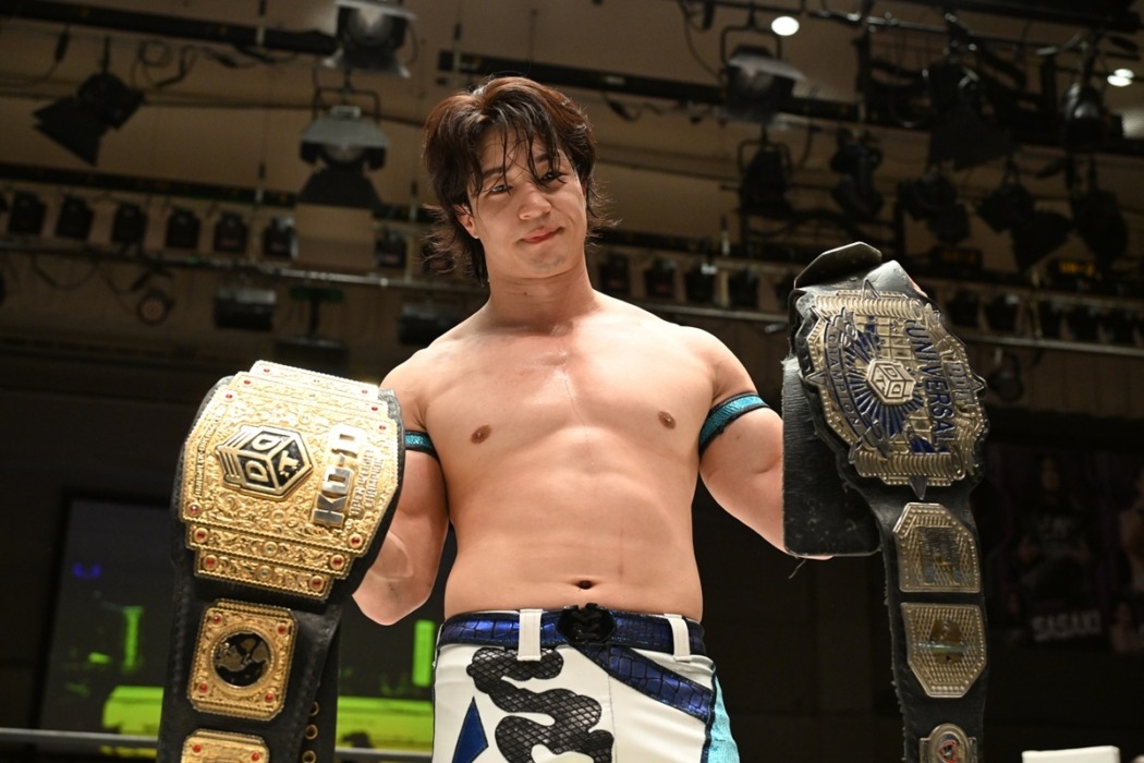 バックステージで上野は「僕たちは東京ドームに行きます。これは会社からこういうふうに煽ってくれと言われてるわけじゃなく。たくさんの人が来てくれた両国で、この2本のベルトを獲れたら、みんなと夢を見ていきたいと思って叫んだ夢にササダンゴさんが出て来てくれて。僕だけが掲げたものが背中を押されて、本気で行きたい。無差別級もUNIVERSALも持ったチャンピオンで、DDTが好きでプロレスやってる僕だから。みんなの夢を背負って進めるプロレスラー上野勇希でいるから。僕が頑張れば頑張るほど、挑戦者が頑張って。僕がさらに上に行きますから」と話した。正田については「今の若い奴ら、僕とやったらもっとおかしいプロレスラーになれるんじゃないかと。DDTで一番じゃんけんが強い男(暫定)正田壮史。あいつはすごいんです。でも今つまんない。両国でシングルやりました。やっぱりすごいって思いました。でも、まだちょっと。俺もずっと怖いし、楽しいし、その繰り返しだから。正田、頑張ろうな」と期待を込めた。