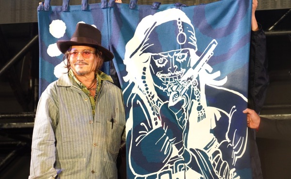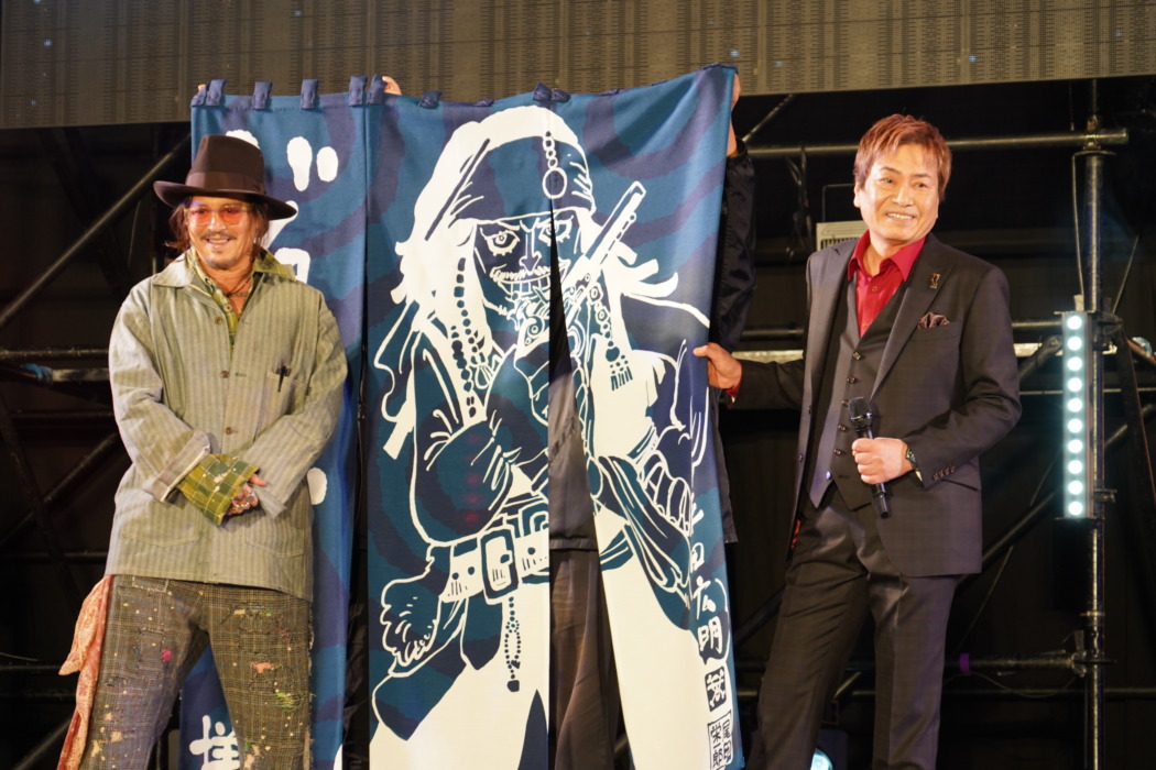来日中の俳優ジョニー・デップが12月7日「東京コミックコンベンション2025」(以下「東京コミコン2025」)のトークステージに登壇。声優・平田広明から漫画家・尾田栄一郎が描いた“のれん”を贈られ感激した。