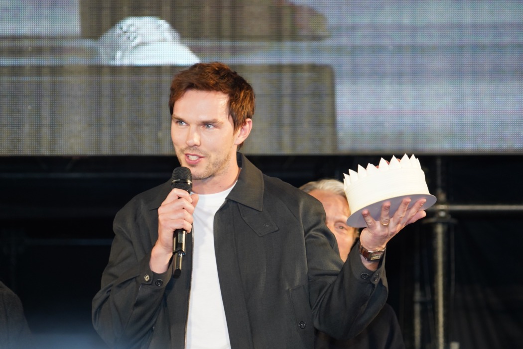 またこの日12月7日は『スーパーマン』(2025)などのニコラス・ホルトの誕生日ということで、バースデーケーキでお祝い。ニコラスは「この皆さんと一緒に誕生日を祝えるなんて。このケーキは独り占めして帰りの飛行機で頂きます(笑)」。