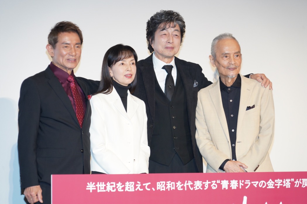 映画『五十年目の俺たちの旅』(2026年1月9日公開)の完成披露舞台挨拶が12月8日、都内にて行われ、俳優の中村雅俊、秋野太作、田中健、岡田奈々が登壇。“俺旅”の仲間たちが映画での再結集を喜んだ。